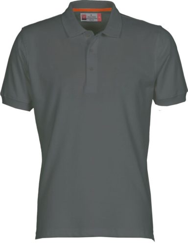 Rövid ujjú férfi piquet póló. Három gyöngyfényű, a póló szinével azonos gombbal. Bordázott gallér és ujj passzé. Mindkét oldalon felsliccelve. A nyakvarrás belül kontrasztos szalaggal fedve, az oldalsó sliccelések ugyanolyan színű szegőszalaggal díszitve. Az oldalsó varrások erősítettek.