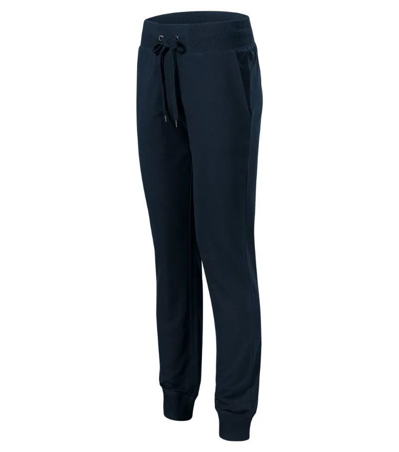 ideális sport- és szabadidős tevékenységekhez, enyhén szűkített szabású szárak, 2:2 kötésű derékrész 5 % elasztánnal, zsinórral állítható, oldalsó ferde zseb, 2:2 kötésű alsó szegély 5 % elasztánnal, díszítő varrás, nem bolyhos belső oldal